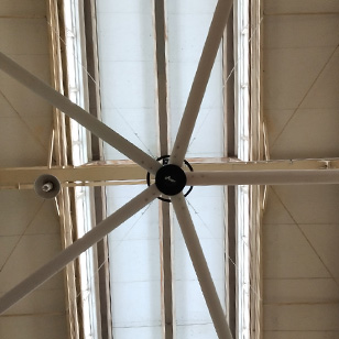 強勁的風量加速了高大空間的空氣流通,快速流動的空氣從而起到通風和降溫的雙重功能,給人以舒適的自然風吹過的感受。