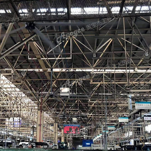 奧寶杰永磁工業(yè)吊扇已經(jīng)在眾多汽車企業(yè)得到應(yīng)用, 無論是大跨度工字鋼廠房,還是球形網(wǎng)架鋼結(jié)構(gòu)廠房奧寶杰工業(yè)吊扇都有成功案例。特別是,對于整車廠面積大, 地面設(shè)備多,物料多特點(diǎn), 奧寶杰采用核心技術(shù)開發(fā)的永磁直驅(qū)吊扇,由于產(chǎn)品重量輕,體積小, 安裝所需空間小,智能控制, 集中控制等優(yōu)勢,永磁工業(yè)吊扇可安裝在各種復(fù)雜廠房環(huán)境。